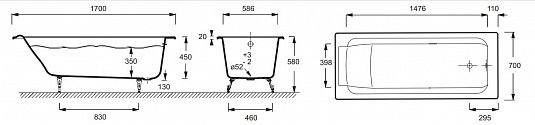 Чугунная ванна 170x70 Jacob Delafon PARALLEL E2947-S-00