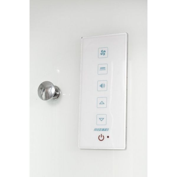 Душевая кабина Deto D279S+ эл. Прекрасный выбор. Гарантия производителя 5 лет, безсиликоновая сборка, разнообразная вариация кабин (с подсветкой/без , с крышей/без , гидромассаж да/нет). Страна- Финляндия. Закаленное стекло высокого качества (высокая температура закалки). При производстве используются высококачественные материалы и комплектующие!