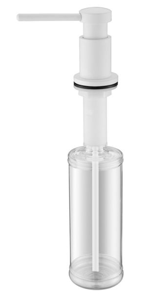 Дозатор для кухни и ванной, артикул D005-431Дозатор для кухни или ванной, встраиваемый, объемом 350 мл, матовая поверхность, изготовлен из латуни и пластика.