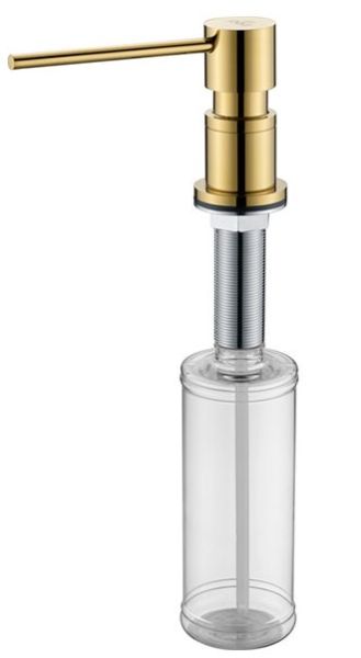 Дозатор для кухни и ванной, артикул D003-GДозатор для кухни или ванной, встраиваемый, объемом 350 мл, матовая поверхность, изготовлен из латуни и пластика.