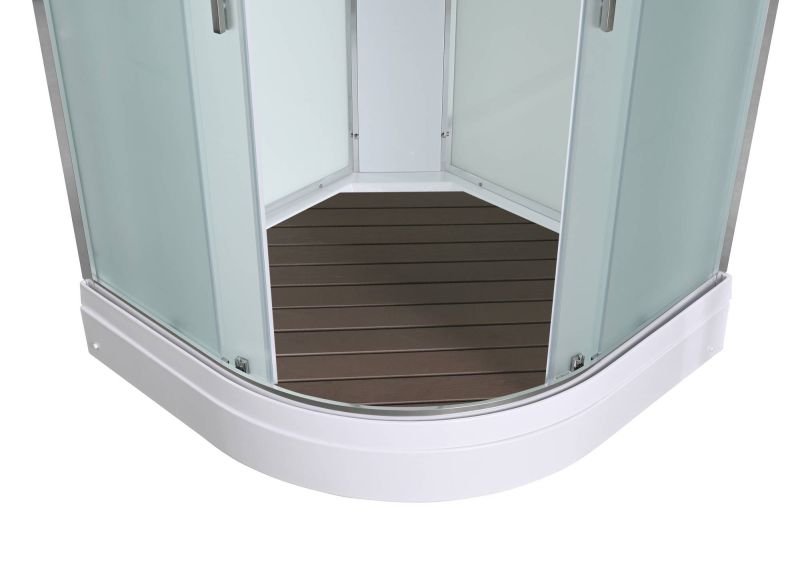 Стильная душевая кабина AvaCan EM2090N сочетает в себе высокую функциональность, практичность и надежность. При изготовлении применяется безопасное закаленное стекло толщиной 5 мм (матовое), надежно фиксируемое алюминиевым профилем. Сборка без силикона (увеличивает срок службы), внутренняя сборка(облегчает установку и ревизию; позволяет установить в ограниченном пространстве), смеситель резьбовой (без хомутов). Съемный экран поддона (позволяет осуществлять ревизию сифона). Цвет профиля  хром. Двойные металлические ролики дверей (увеличивают срок службы).В комплекте : душевая штанга, две полочки , арома-лейка с витамином С (картридж съемный),полимерная вставка в поддон(имитация дерева),сифон, ручки дверей из нержавейки , двойные ролики .