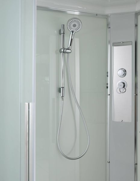 Стильная душевая кабина AvaCan EM2811R сочетает в себе высокую функциональность, практичность и надежность. При изготовлении применяется безопасное закаленное стекло толщиной 5 мм (матовое), надежно фиксируемое алюминиевым профилем. Сборка без силикона (увеличивает срок службы), внутренняя сборка(облегчает установку и ревизию; позволяет установить в ограниченном пространстве), смеситель резьбовой (без хомутов). Съемный экран поддона (позволяет осуществлять ревизию сифона). Цвет профиля хром. Двойные металлические ролики дверей (увеличивают срок службы).В комплекте : душевая штанга, две полочки , тропический (верхний) душ, арома-лейка с витамином С (картридж съемный),полимерная вставка в поддон(имитация дерева),сифон, ручки дверей из нержавейки , двойные ролики .