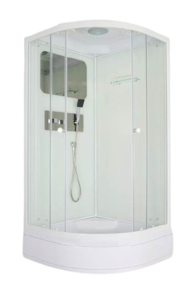БЕЗСИЛИКОНОВАЯ СБОРКАДушевая кабина Parly BMM86Размер: 85х85х215 смКомпактная светлая кабина экономит место в ванной и визуально увеличивает пространство. Отсутствие центрального столба позволило увеличить внутреннюю площадь душевой зоны.Достоинства:Прозрачное закаленное стекло, 4 мм. Полотно устойчиво к случайным ударам. В случае битья рассыпается на мелкие грани с тупыми концами.Стенки из закаленного белого стекла, 4 мм.Профиль: белый, алюминиевый. Не подвержен коррозии.Поддон: средний 26 см, полукруглый. Высота поддона предупреждает разбрызгивание воды и позволяет замачивать вещи.Сборка без применения силикона. Конструкция душевой кабины обеспечивает слив воды внутрь поддона. Сам поддон по всему периметру оснащен водонепроницаемым бортиком высотой 2 см, который исключает перелив воды за пределы душевой зоны.Комплектация: полка, большое встроенное зеркало, верхний душ ТРОПИК, ручной душ, сифон Внимание! Производитель оставляет за собой право вносить изменения в конструкцию и комплектацию моделей без предварительного уведомления!