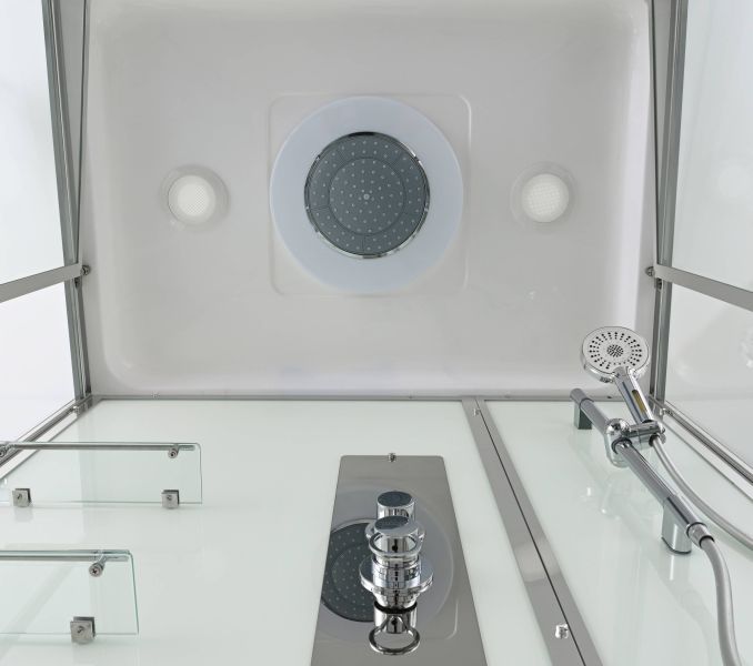 Стильная душевая кабина AvaCan сочетает в себе высокую функциональность, практичность и надежность. При изготовлении применяется безопасное закаленное стекло, надежно фиксируемое алюминиевым профилем. Профиль сделан из алюминия повышенной прочности. Сборка без силикона (увеличивает срок службы, защищает от протечек), внутренняя сборка (облегчает установку и ревизию; позволяет установить в ограниченном пространстве и обойтись без демонтажа других сантехнических приборов), смеситель резьбовой (без хомутов).Съемный экран поддона (позволяет осуществлять подключение и ревизию сифона).Двойные металлические ролики дверей (распределение нагрузки на два ролика, увеличивают срок службы). Душевая штанга(позволяет регулировать по высоте ручную лейку), ручная арома-лейка с витамином С (картридж в комплекте,есть возможность замены или удаления картриджа), полочки(из стекла, с ограничителем), сифон с гидрозатвором.