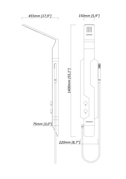Душевая панель Black & White Gravity GR028 1400 х 200 мм