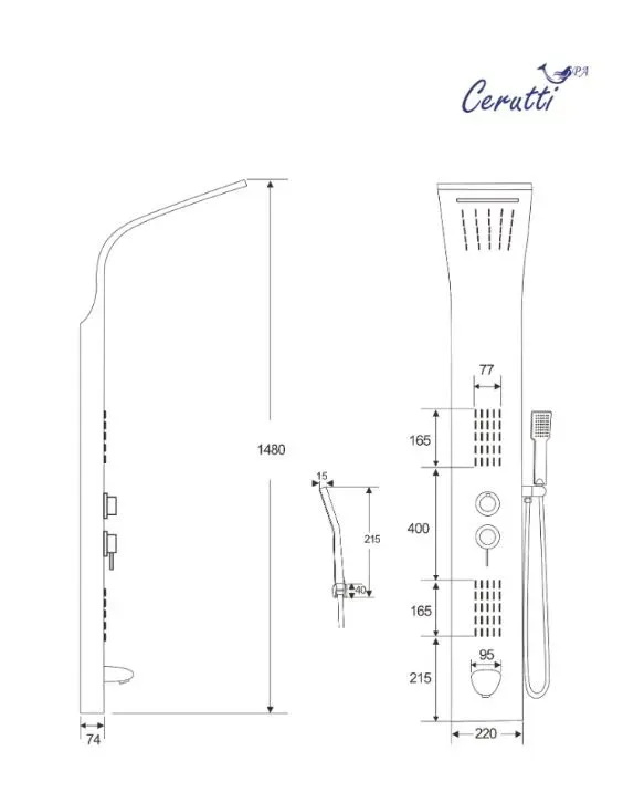 Комплектация: излив , верхний душ , стойка , лейка , держатель , смеситель , шланг