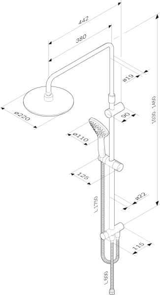 - Размер верхнего душа, см:22