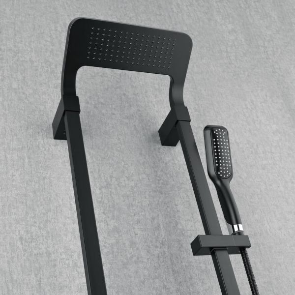 верхний душ, ручной душ и поворотный излив. левый переключатель