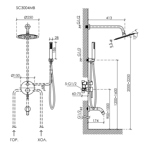 - Размер верхнего душа, см:25