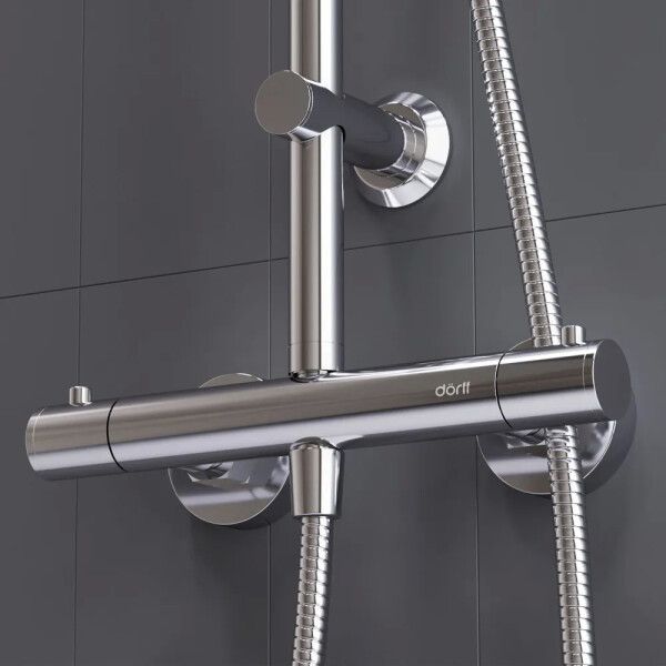 Душевая система Dorff New plus D0710400. Душевая система и смеситель для ванны и душа c термостатом по привлекательной цене. Душевая система Futura с тропическим душем, ручным душем с 3 функциями и длинным шлангом в 1500 мм - просто находка в своем сегменте. А стойки возможностью регулировки по высоте и шланги с защитой от перекручивания станут приятным бонусом для тех, кто ценит эргономичность и функциональность.Термостат душевых систем в элегантных современных размерах предотвратит от ожогов собрал в себе лучшие немецкие качества: стильный дизайн, компактные размеры, европейское качество, прочность и долговечность.Материал латунь, ПВХ (поливинилхлорид), нержавеющая сталь Количество режимов струи1УправлениеТермостатРазмер лейки, мм110Число монтажных отверстий4Стандарт подводки1/2"Количество потребителей2Назначение прибораДля ванны, Для душаВес с упаковкой, г2650Состав набора: Вентиль, Верхний душ, Держатель для лейки, Душевая лейка, Душевая штанга, Кронштейн для верхнего душа, Смеситель, Шланг для душаВнешнее исполнениеФорма душаКруглаяМонтажНа потолок, На стенуПоверхность изделияГлянцеваяСтильСовременныйИсполнение изливаМонолитный, С режимом "душ"Особенности: Защита от скручивания, Регулировка угла наклона, Автоматический девиатор, Ограничитель температурыДополнительныеТипДушевой комплектБрендDorffАртикулD0710400Страна-изготовительГерманияГарантия5 летЦветСеребристый хром