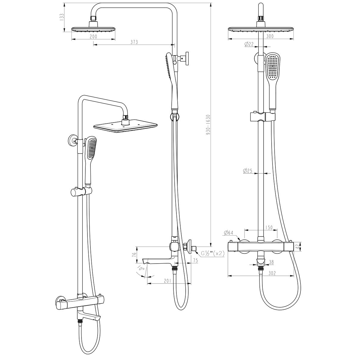• Душевой шланг 1,5 м