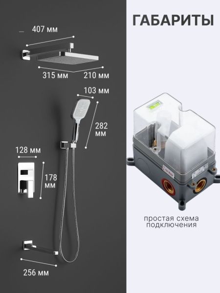 Душевой комплект содержит все необходимое для монтажа. Кроме того, наша душевая стойка с дисплеем и подсветкой имеет простой и быстрый монтаж, благодаря чему вы сможете установить ее самостоятельно без привлечения специалистов. Это позволит сэкономить время и деньги, а также получить удовольствие от процесса создания своего уютного уголка в ванной комнате.
