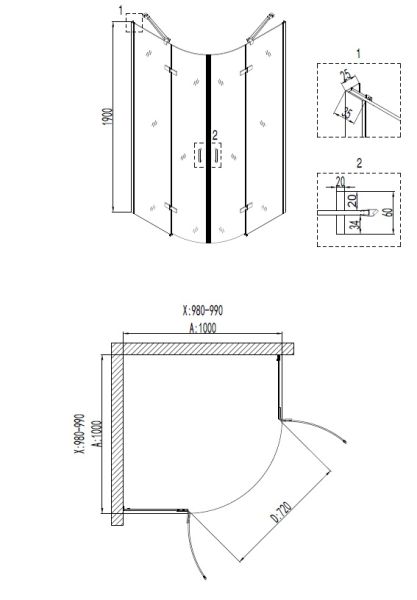 Душевой уголок Niagara Nova NG-6816-08 BLACK 100x100 см