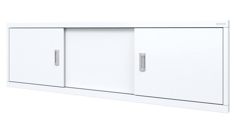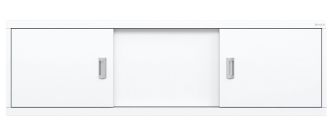 Конструкция имеет три подвижные раздвижные двери из МДФ, покрытых высокоглянцевой белой пленкой. Две боковые дверцы с врезными хромированными металлическими ручками.