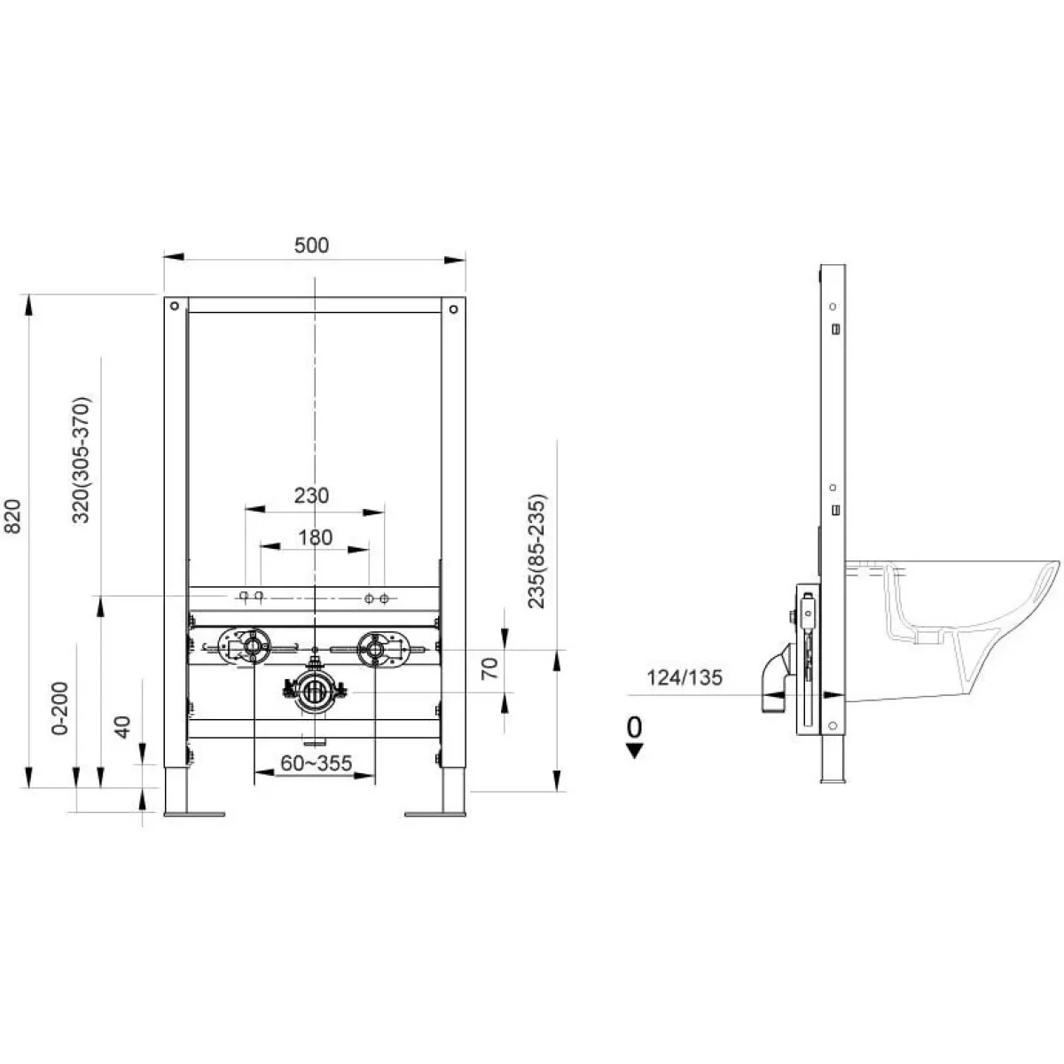 KLUDI-UNIFIX инсталляция для подвесных биде, 12 см, выс. 82 см