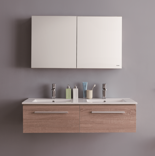 1. Многослойное дерево, 2. Два выдвижных ящика с доводчиками 3. Цвет: светлый дуб. 4. Зеркальный шкаф 5.Раковина в комплекте.