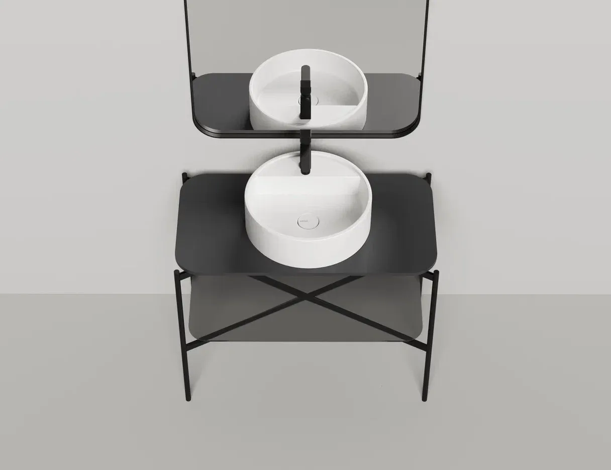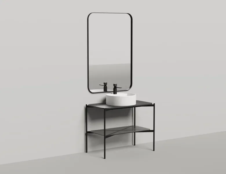 Консоль, предназначенная для установки накладных раковин из ассортимента Salini, изготовлена из металла, выполнена в благородном матовом чёрном цвете.