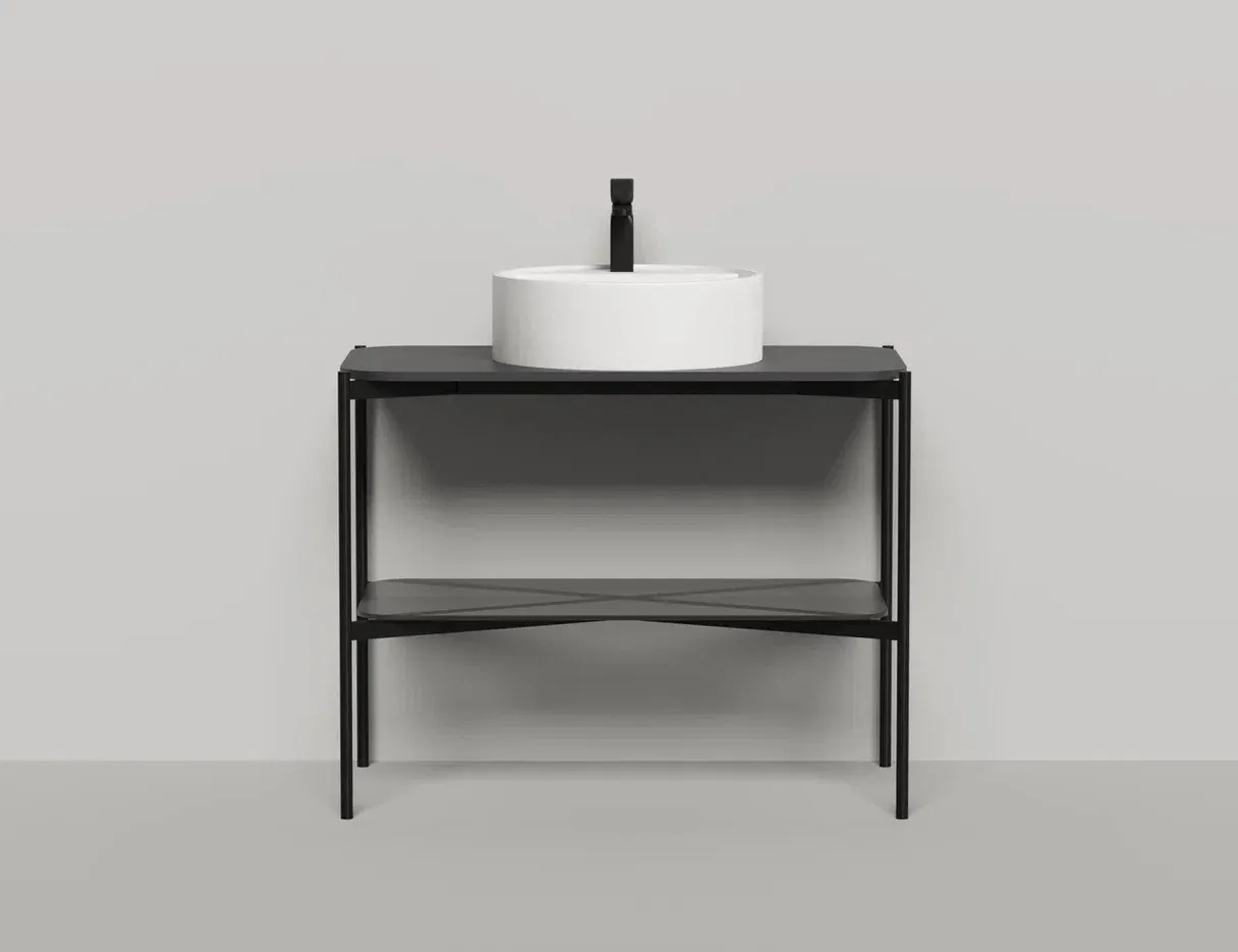 Консоль, предназначенная для установки накладных раковин из ассортимента Salini, изготовлена из металла, выполнена в благородном матовом чёрном цвете.