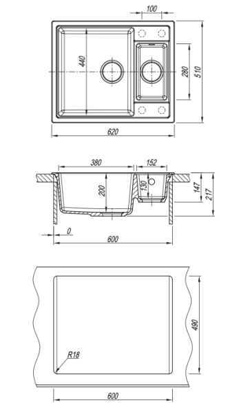 - Отверстия под смеситель:нет