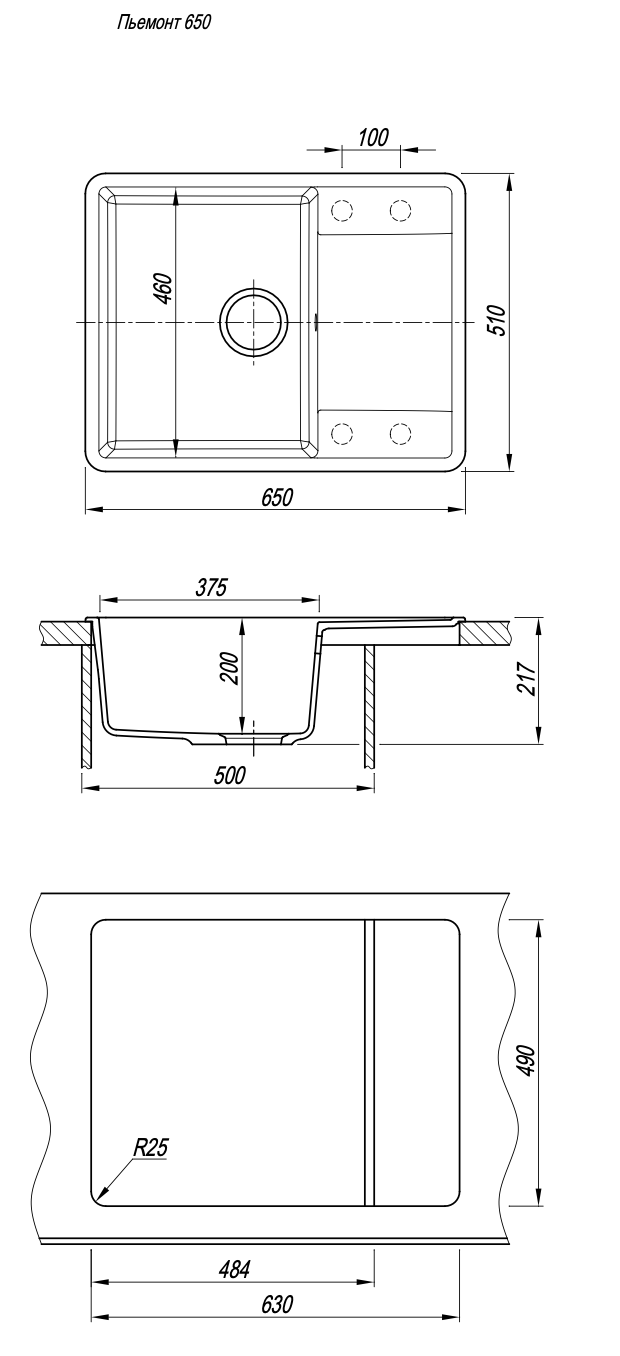 - Прямоугольная мойка с большой чашей для кухонного шкафа 50 см