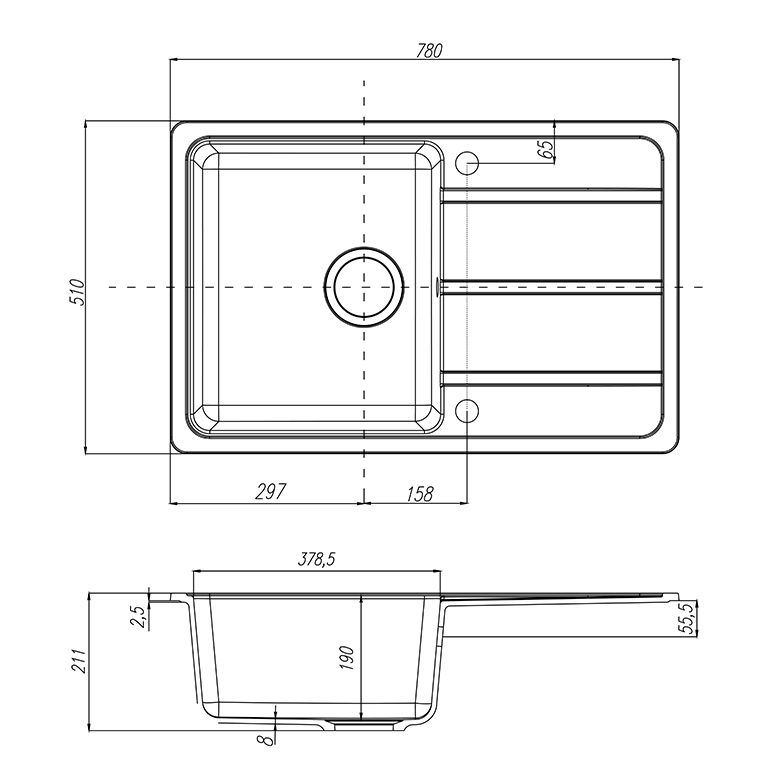 - Отверстия под смеситель:нет