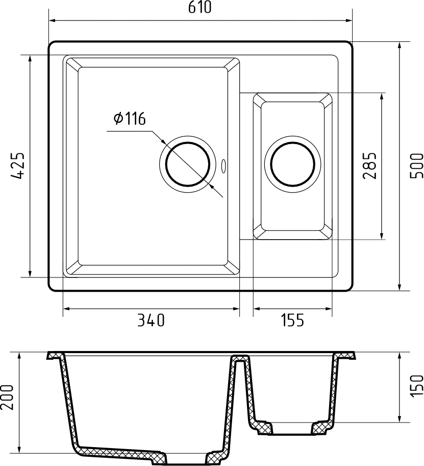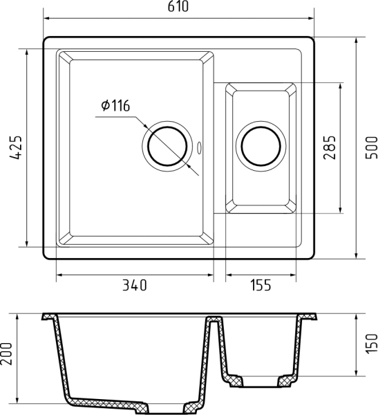 Мойка кухонная GranFest CLASSIC Q-610K графит
