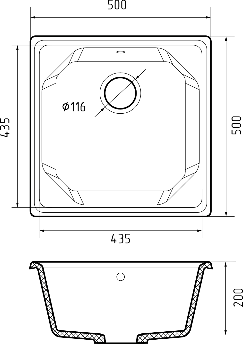 Общий размер: 500x500x200 мм