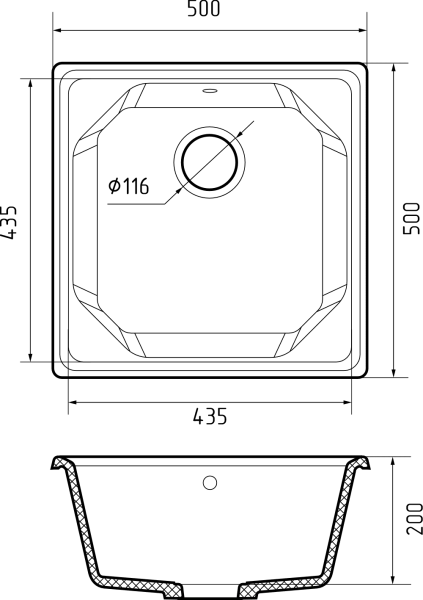 Размер чаши: 435x435x200 мм