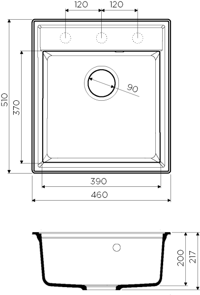 - Отверстия под смеситель:нет