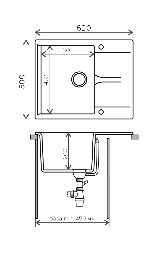 Мойка кухонная Polygran GALS-620 серый 444508 купить