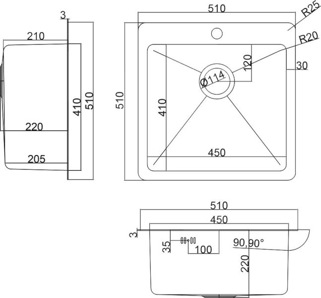 - Отверстия под смеситель:1