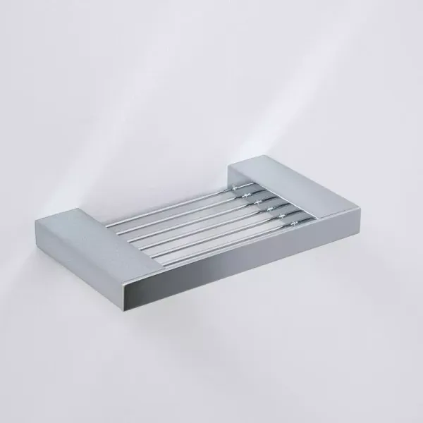 Мыльница для ванной комнаты Aquanet 5611 с решетчатым основанием, на которое непосредственно кладется мыло, продумана до мелочей при всей ее внешней простоте. Благодаря решетке в ней не застаивается вода, что позволяет экономить мыло. Изделие выполнено из латуни. Этот многокомпонетный сплав отличается прочностью и стойкостью к коррозии, что особенно важно в условиях повышенной влажности. Решетчатое основание окаймлено со всех сторон широкими металлическими бортами, так что мыло не соскользнет. А крепление мыльницы к стене простое и надежное.