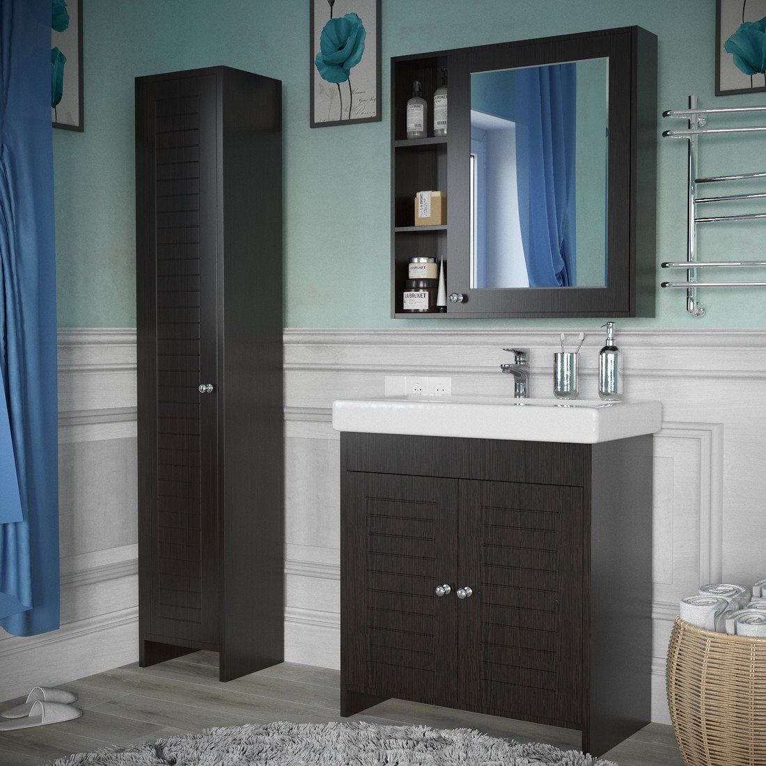 Шкаф-пенал Stella Polar не только функциональный предмет интерьера ванной комнаты, но великолепное эргономичное дополнение дизайна, как небольшого, так и крупного помещения. Напольный способ установки производится непосредственно на пол, при этом конструкция максимально устойчива при серьезных физических нагрузках.Компания Stella Polar использует при производстве высококачественные водоотталкивающие материалы, соответствующие всем необходимым требованиям безопасности. Коллекция выполнена в эксклюзивном дизайнерском решении в лучших традициях. Венге (темное дерево), основной цвет исполнения Stella Polar, отлично подходящий большинству дизайнерских решений. Шкаф-пенал предусматривает удобную и вместительную систему хранения. Качественные доводчики позволяют обеспечить мягкое и тихое закрывание. Россия родина бренда Stella Polar, вся продукция производится со строгим соблюдением всех стандартов, благодаря чему можно быть абсолютно уверенным в надежности и высоком качестве. Шкаф-пенал Stella Polar создаст уют и комфорт в любом дизайнерском решении, и ванная комната обретет неповторимый элемент интерьера.