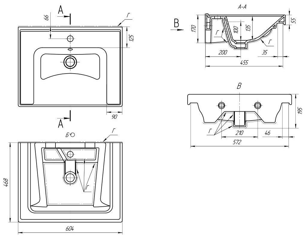 Тип: раковиныПо форме: прямоугольныеРазмер, мм (ШxГxВ): 604x468x195Размер в упаковке, мм (ШxГxВ): 634x498x225Цвет: белыйВес с упаковкой, кг: 14.7По монтажу: мебельнаяМатериал: керамика