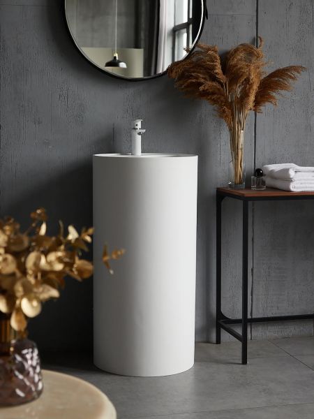 Модель напольного размещения. Не требует сложных манипуляций при инсталляции, устанавливается обособленно от предметов мебели. Благодаря большой видимой площади белоснежно-матовой, бархатистой поверхности великолепно выглядит в интерьере, является самостоятельной композицией. Часто устанавливается в сан.узлах ресторанов и баров, а также частных домах и квартирах с ванными комнатами большой площади.