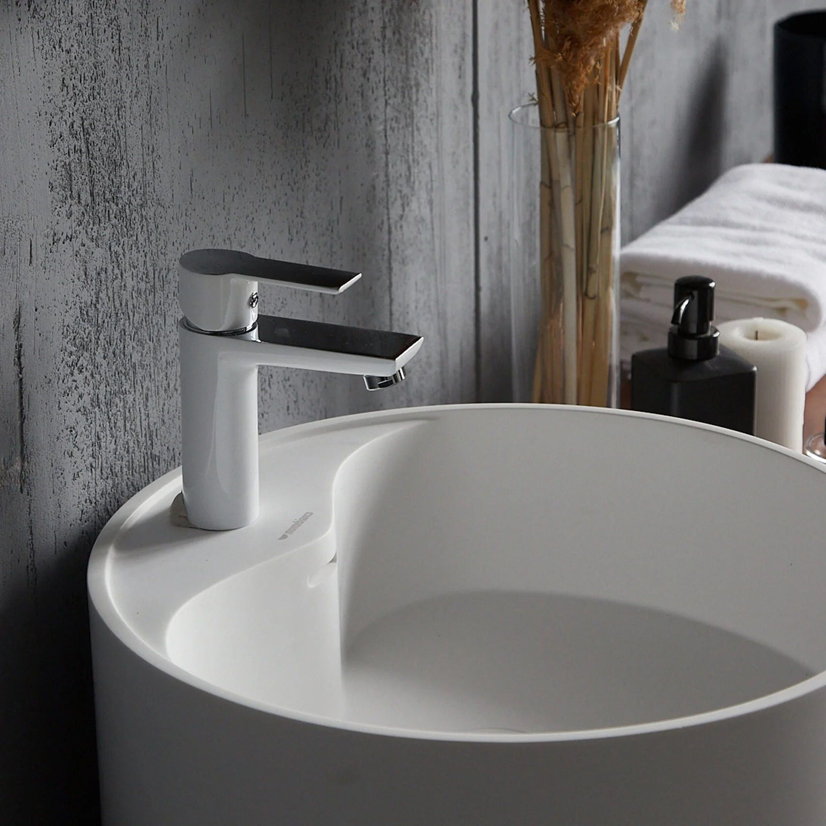 Высота раковины оптимальна как для высоких людей, так и небольшого роста, в том числе детей. Имеется защита от перелива. Материал не впитывает влагу, не порист, непроницаем для плесени, бактерий и грибков.