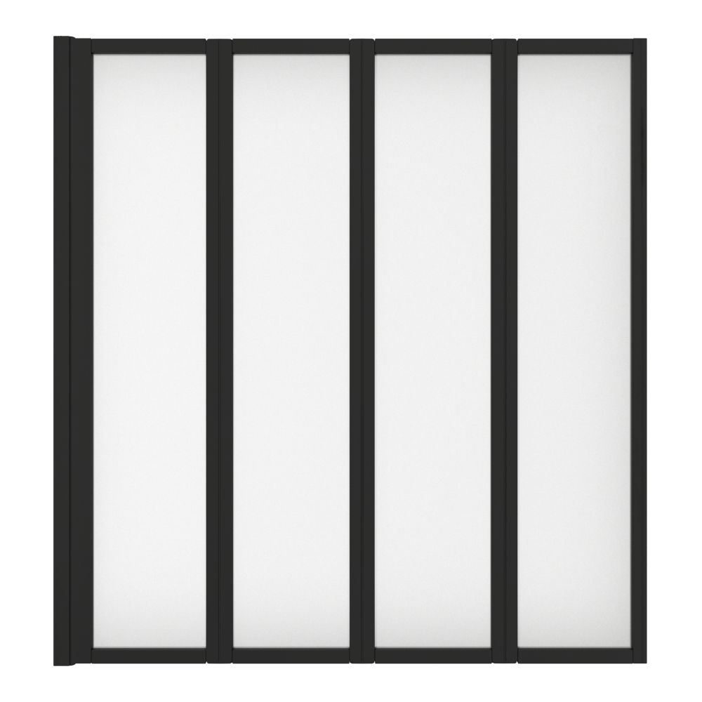 Шторка для ванной Ceruttispa Bouna B с прозрачным стекломРазмер: 131x139 ммМодель из прозрачного закаленного стекла (4 мм). Полотно устойчиво к случайным ударам. В случае битья, стекло рассыпается на множество граней с тупыми концами, о которые невозможно пораниться.Складная шторка из 4-х частей удобно складывается над ванной. Вода, стекая со стекла, попадает в ванну, оставляя пол сухим.Алюминиевый профиль в чёрном цвете устойчив к образованию коррозии, не деформируется при перепадах температуры и высокой влажности.Модель крепится к стене.Шторка – универсальная, подходит для установки на правую и левую сторону.Достоинства стеклянной шторки для ванны:Защищает ванную комнату от брызг воды. Пол возле ванны остается сухим, что снижает шансы поскользнуться после водных процедур.Стильный дизайн дополнит оформление ванной комнаты.Шторки из стекла практичны, долговечны и гигиеничны. По сравнению с тканными аналогами, на стеклянных моделях не скапливаются бактерии и грязь, полотно легче чистить.