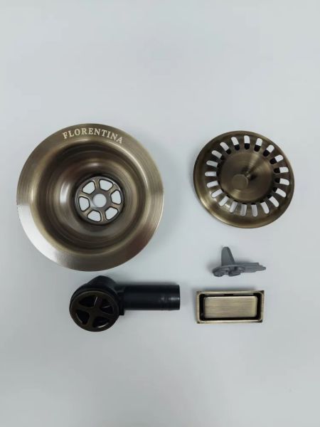 В комплект входит: сетчатая корзина, чашка, круглый и прямоугольный скругленный переливы, ключ для монтажа.Преимущество новинки в том, что она подойдет и к мойкам других брендов.Сливная арматура изготовлена из высококачественной нержавеющей стали AISI 304, безопасной для здоровья и не выделяющей вредных и токсичных веществ.