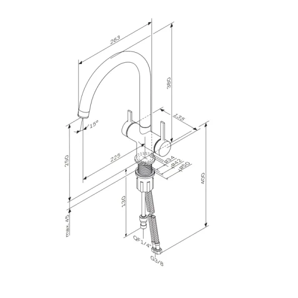 - Высота смесителя:38