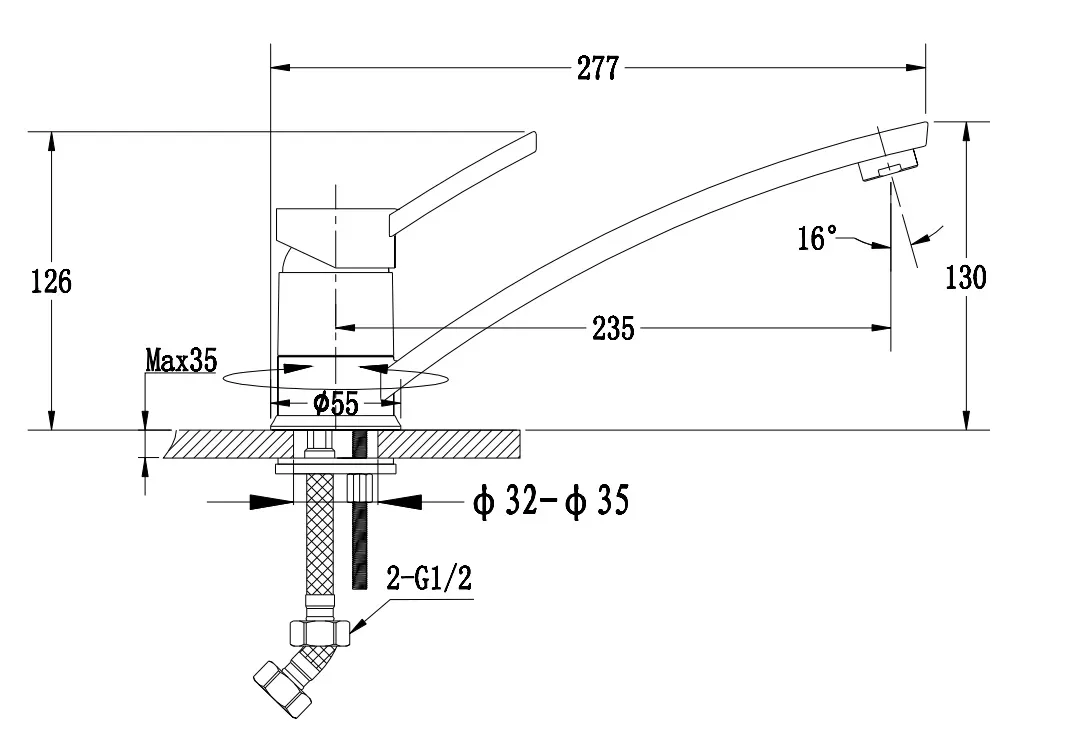 • Высота смесителя:
