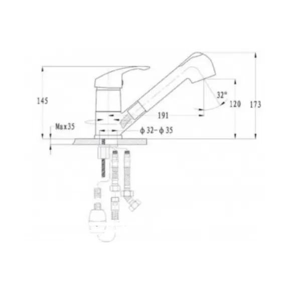 Излив: поворотный, выдвижной