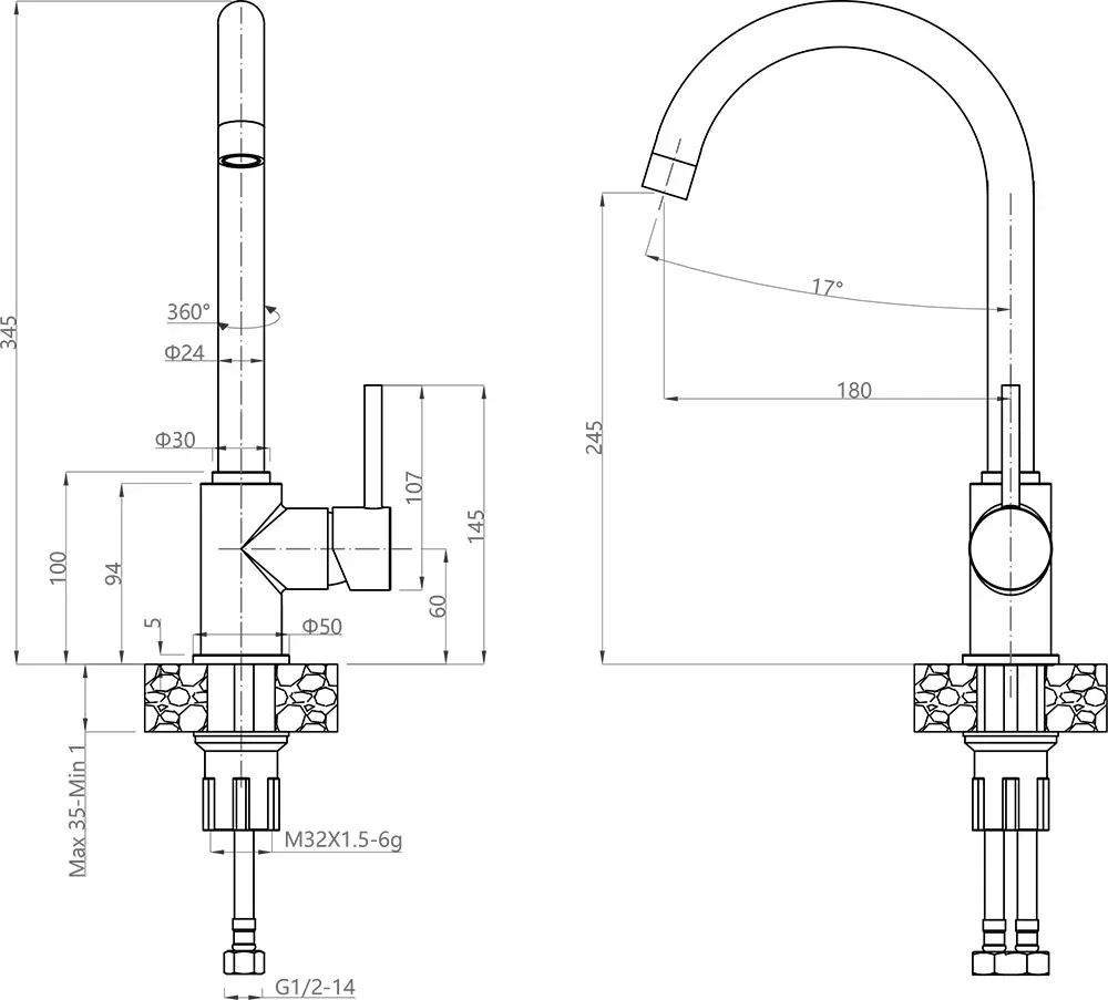 - Высота смесителя:34.5
