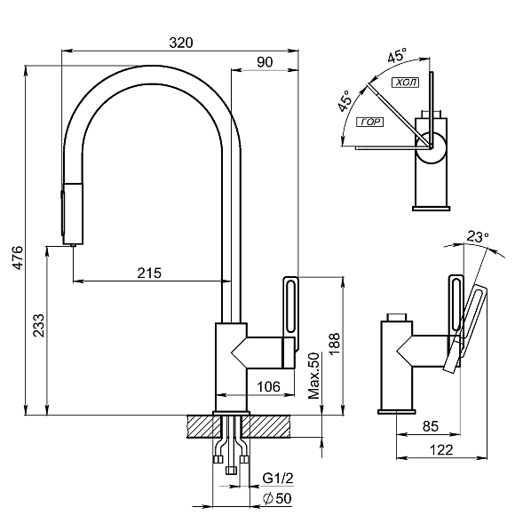 - Выдвижной излив:да
