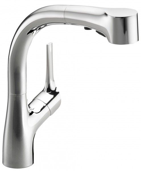 Смеситель для кухни Jacob Delafon ELATE E13963-CP.Рычаг переключения расположен сбоку от раковины для лучшего доступаВысокий Смеситель для кухни Jacob Delafon ELATE E13963-CP. монтируемый в одно отверстие, однорычажный, с выдвижным, поворотным, трехрежимным изливом.
