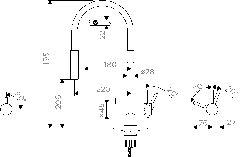 - Высота смесителя:49.5