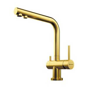 • Современный дизайн и удобство использования, благодаря высокому изливу; • Цвет: Светлое золото; • Технология PURE LIFE: Подключение фильтра для очистки воды. Фильтрованная вода подается по отдельной трубке и не смешивается с водопроводной водой; • Высококачественная латунь сохранит воду чистой и здоровой; • Аэратор произведен из пластика, благодаря чему на нем никогда не появится известкового налета и ржавчины; • Коробка внутри проложена поролоном, который обеспечит сохранность изделия при транспортировке; • Полный набор креплений, соединительных шлангов, подробная инструкция и гарантийный талон в комплекте.