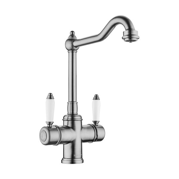 • Классический дизайн и удобство использования, благодаря высокому изливу; • Цвет: Серебро; • Технология PURE LIFE: Подключение фильтра для очистки воды. Фильтрованная вода подается по отдельной трубке и не смешивается с водопроводной водой; • Высококачественная латунь сохранит воду чистой и здоровой; • Аэратор произведен из пластика, благодаря чему на нем никогда не появится известкового налета и ржавчины; • Коробка внутри проложена поролоном, который обеспечит сохранность изделия при транспортировке; • Полный набор креплений, соединительных шлангов, подробная инструкция и гарантийный талон в комплекте.