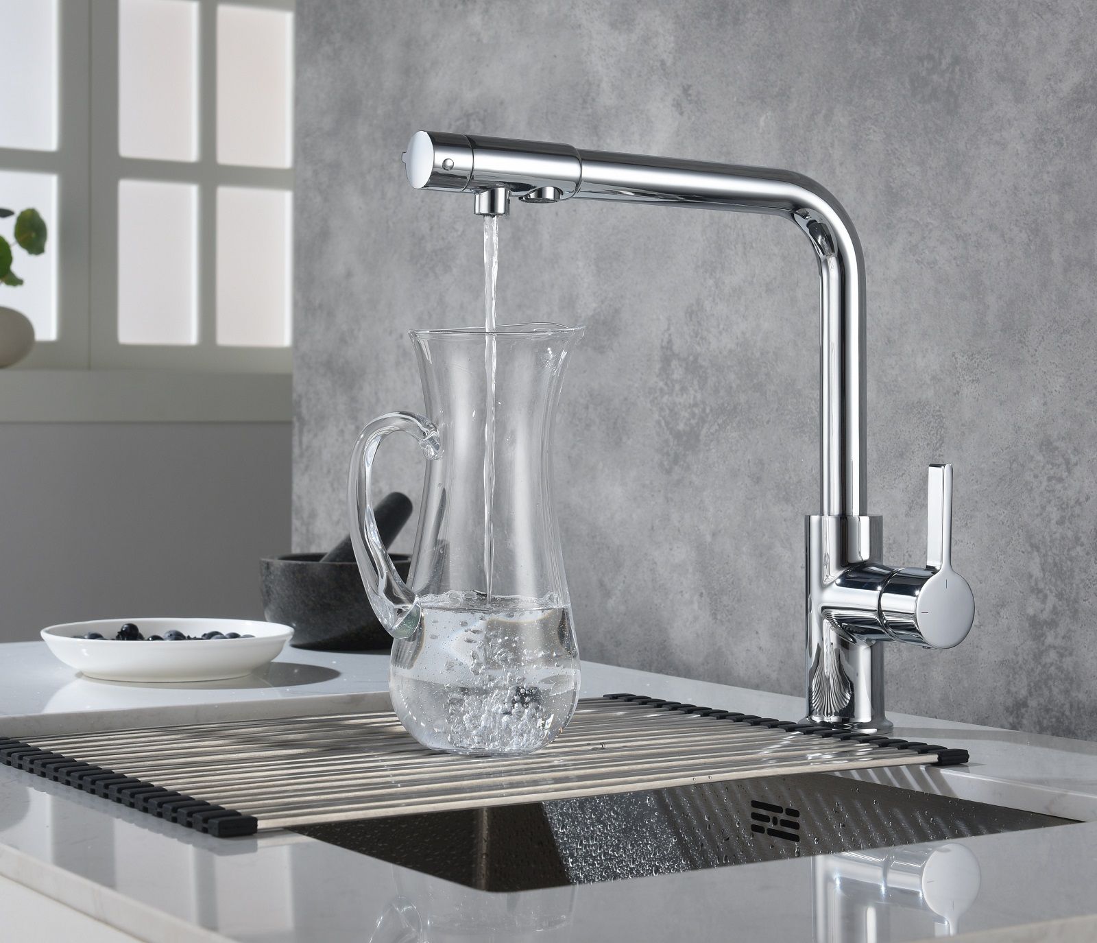 - Смеситель для кухни, с подключением фильтра для питьевой воды