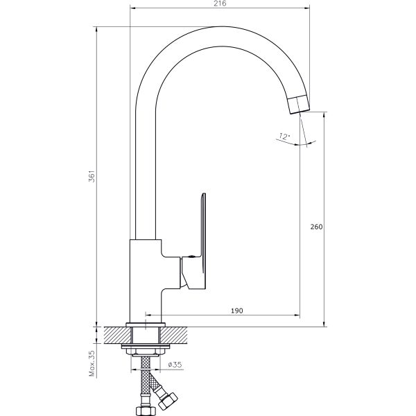 Смеситель для кухни RUSH арт. LU1630-22 с поворотным изливом из коллекции Luson изготовлен из высококачественной латуни и имеет рычажное управление.В смеситель установлен картридж D-30 с керамическими пластинами. Высота смесителя 361 мм. Излив поворотный, 190 мм. Высота излива до аэратора 260 мм. Аэратор изготовлен из пластика с нержавеющим корпусом, угол наклона аэратора - 12 гр. В комплекте гибкая подводка с латунными гайками 45 см - 2шт, универсальная присоединительная группа для установки на горизонтальную поверхность, фум-лента, индивидуальный пакет, паспорт, гарантийный талон.