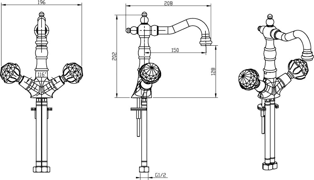 Смеситель Boheme Brillante Presente 352 для раковины не только практичное решение для санузла, но и стильный элемент сантехники. На вашу раковину отлично подойдет смеситель Boheme Brillante. Двухвентильные смесители – это классическая модель, внутри которой установлены две кран-буксы.Латунь, кристаллы Swarovski из которой произведен смеситель Boheme Brillante 352 отличается высокой прочностью и произведена без использования вредных компонентов. длина излива 15 см и высота излива 12.8 см - это оптимальные параметры у смесителя Boheme 352, предотвращающие разбрызгивание. Излив Boheme Brillante так же оснащен функцией вращения, что значительно упростит использование смесителя. Конструкция модели Boheme Brillante позволяет замечательно установить смеситель на раковину. Смеситель для раковины Boheme 352 выполнен в стиле ретро, что великолепно прослеживается в его форме. Марка Boheme, родиной которой, является Италия, создает смесители качества с высокотехнологичного оборудования, благодаря чему смесители отличаются долговечностью и надежностью. Смеситель Boheme Brillante Presente 352 для раковины предмет сантехники без которого не возможно обойтись.